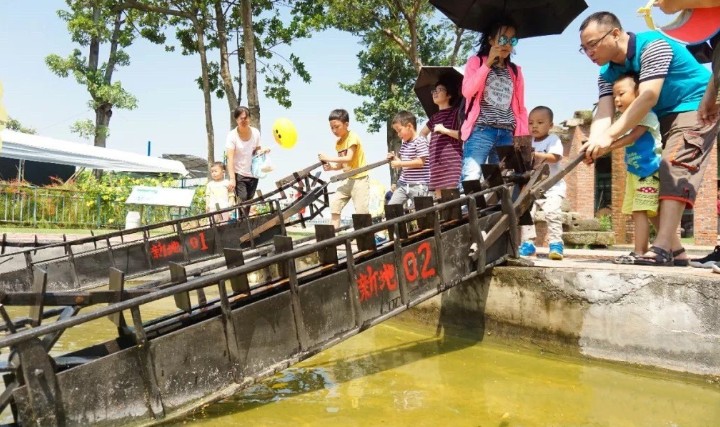 园区特意收集的农耕劳作水车,充满时代智慧,游客还可以亲身体验水车汲水的乐趣。